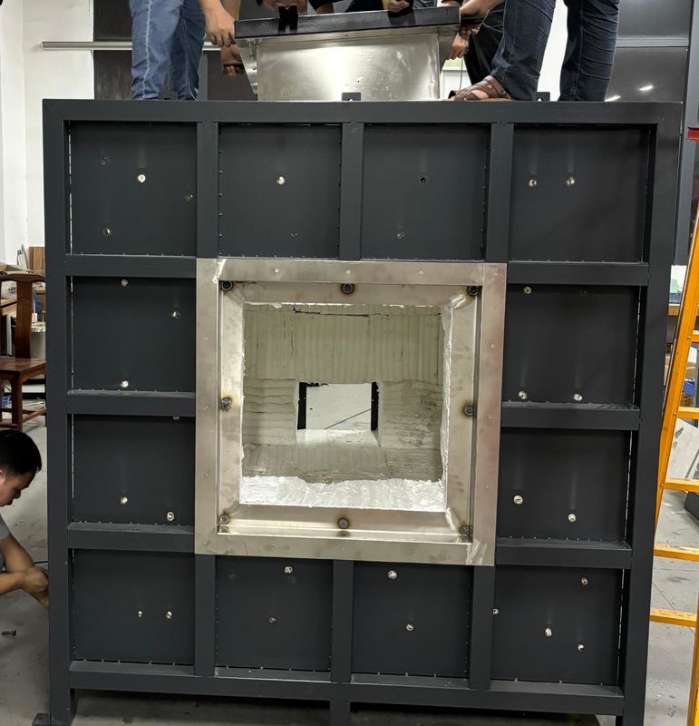 2.Cấu trúc lò:áp dụng cấu trúc bốn lớp, với lớp bên trong ở 1300 ℃ và lớp bên ngoài ở nhiệt độ phòng. Từ ngoài vào trong, chúng là: lớp thứ nhất là vỏ thép không gỉ, và lớp thứ hai là khung kết cấu thép; Lớp thứ ba được xây dựng bằng gạch chịu nhiệt độ cao để tạo thành chu vi; Lớp thứ tư là bông gốm chịu nhiệt độ cao có thể chịu được nhiệt độ lên đến 1700 ℃.